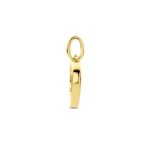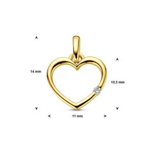 14k Geelgouden hanger in de vorm van een hart met diamant. Het diamantgewicht is 0.01ct. Het hart heeft een afmeting van 10.5x11mm.