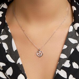 Gerhodineerd zilveren hanger met een hart en zirkonia.