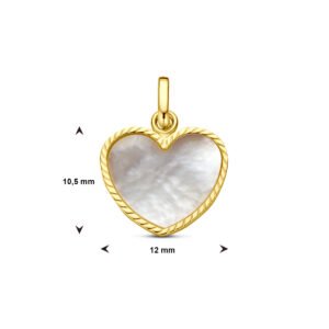 14k Geelgouden hanger uitgevoerd in de vorm van een hartje met parelmoer. Het hartje heeft een afmeting van 10.5x12mm.