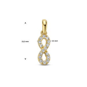 14k Geelgouden infinity hanger met zirkonia en een afmeting van 13.5×4.5mm.