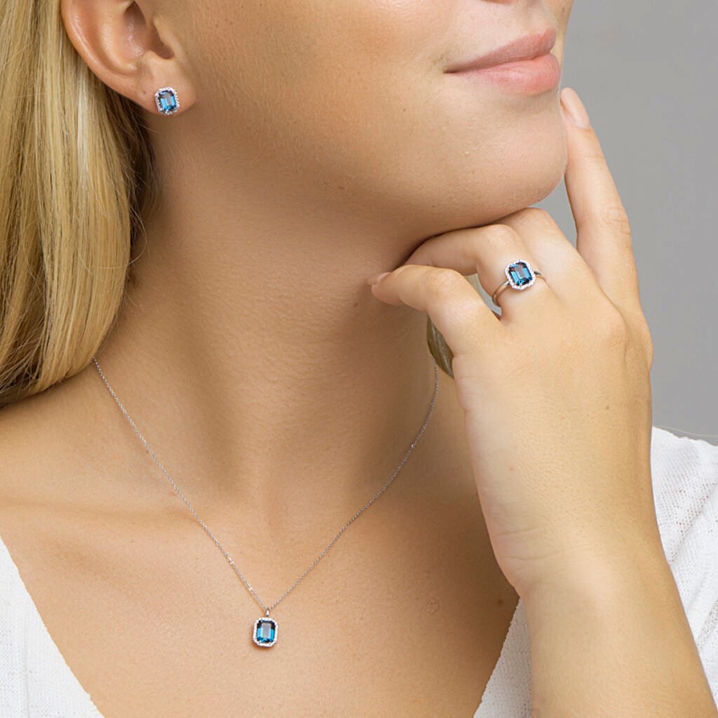 • Steensoort: Blauw topaas met diamant rij