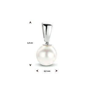 Deze schitterende hanger is volledig gemaakt van 14 karaat witgoud, dit is de allerbeste kwaliteit goud, en bestaat voor maar liefst 58,5% uit puur goud. Het sieraad bestaat uit een slank oogje, waar u gemakkelijk een ketting doorheen haalt, met aan de onderkant een prachtige zoetwaterparel. Verder heeft deze hanger een totale hoogte van 1 cm en een breedte van 6 mm.
