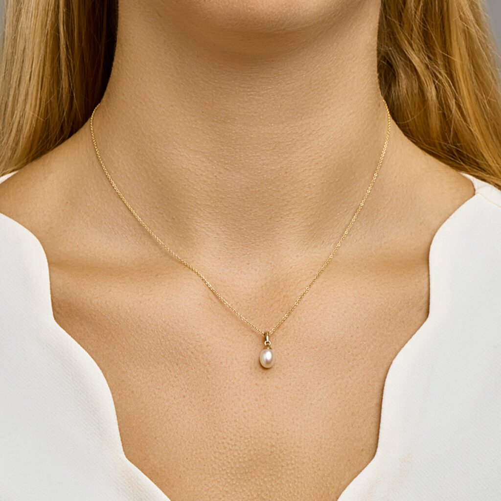 Geelgouden hanger met zoetwaterparel.