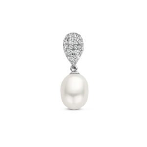 Gerhodineerd 925 zilveren hanger uitgevoerd met een zoetwaterparel en zirkonia. De hanger heeft een totale hoogte van 24mm.