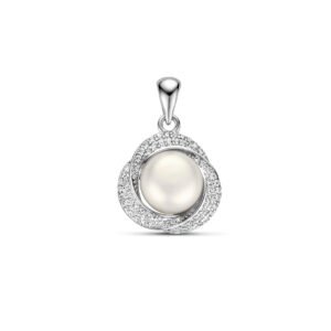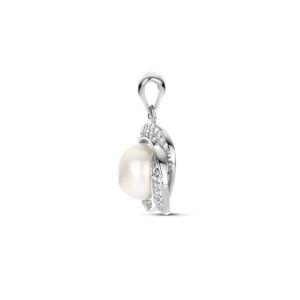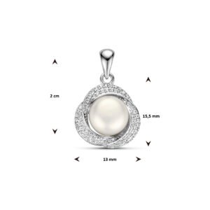 Gerhodineerd 925 zilveren hanger uitgevoerd met een zoetwaterparel en een zirkonia rij. De hanger heeft een totale hoogte van 2.0cm en een breedte van 13mm. De parel heeft een diameter van 7.5mm.