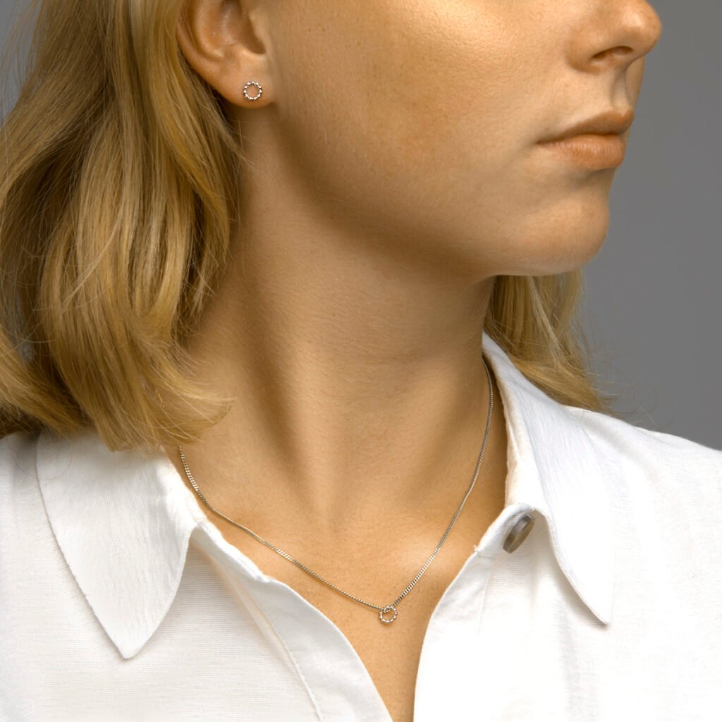 Gerhodineerd 925 zilveren hanger uitgevoerd met bolletjes. De hanger heeft een diameter van 7mm.