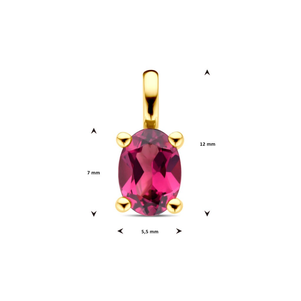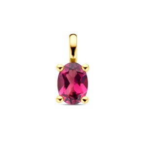 14k Geelgouden hanger uitgevoerd met roze rhodoliet. De hanger heeft afmeting van 12×5.5mm.