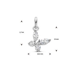 Gerhodineerd 925 zilveren hanger in de vorm van een vlinder met zirkonia. De hanger heeft een totale hoogte van 17mm.