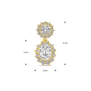 Geelgoud op 925 zilveren hanger uitgevoerd met zirkonia. De hanger heeft een totale hoogte van 21mm. Geen garantie op de plating.
