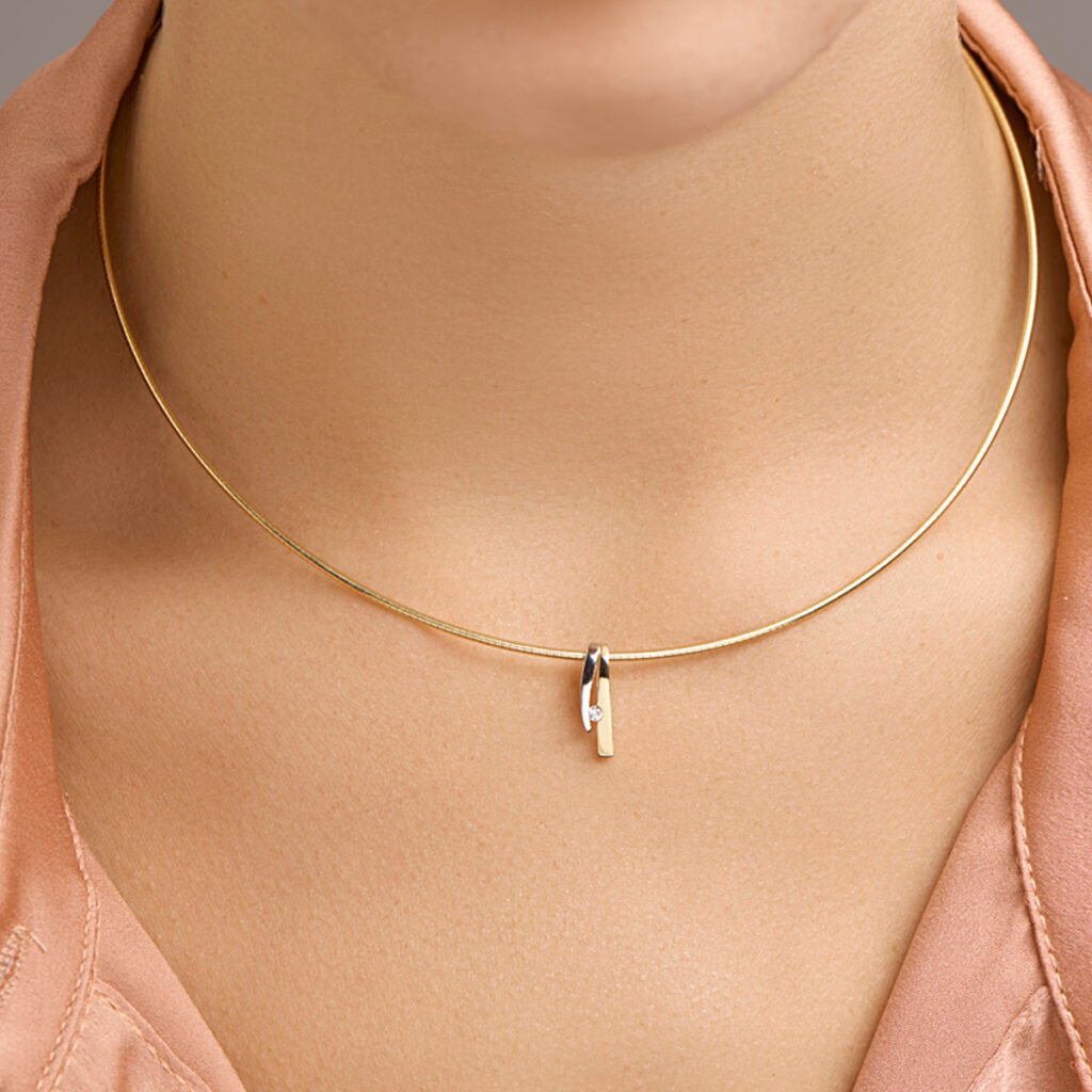 Bicolor wit- en geelgouden hanger met zirkonia. De hanger is onderdeel van een set.