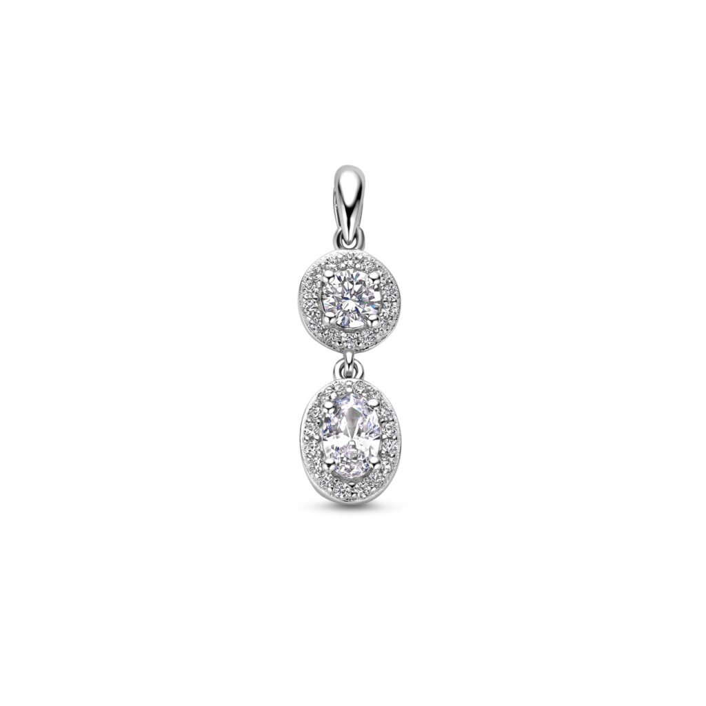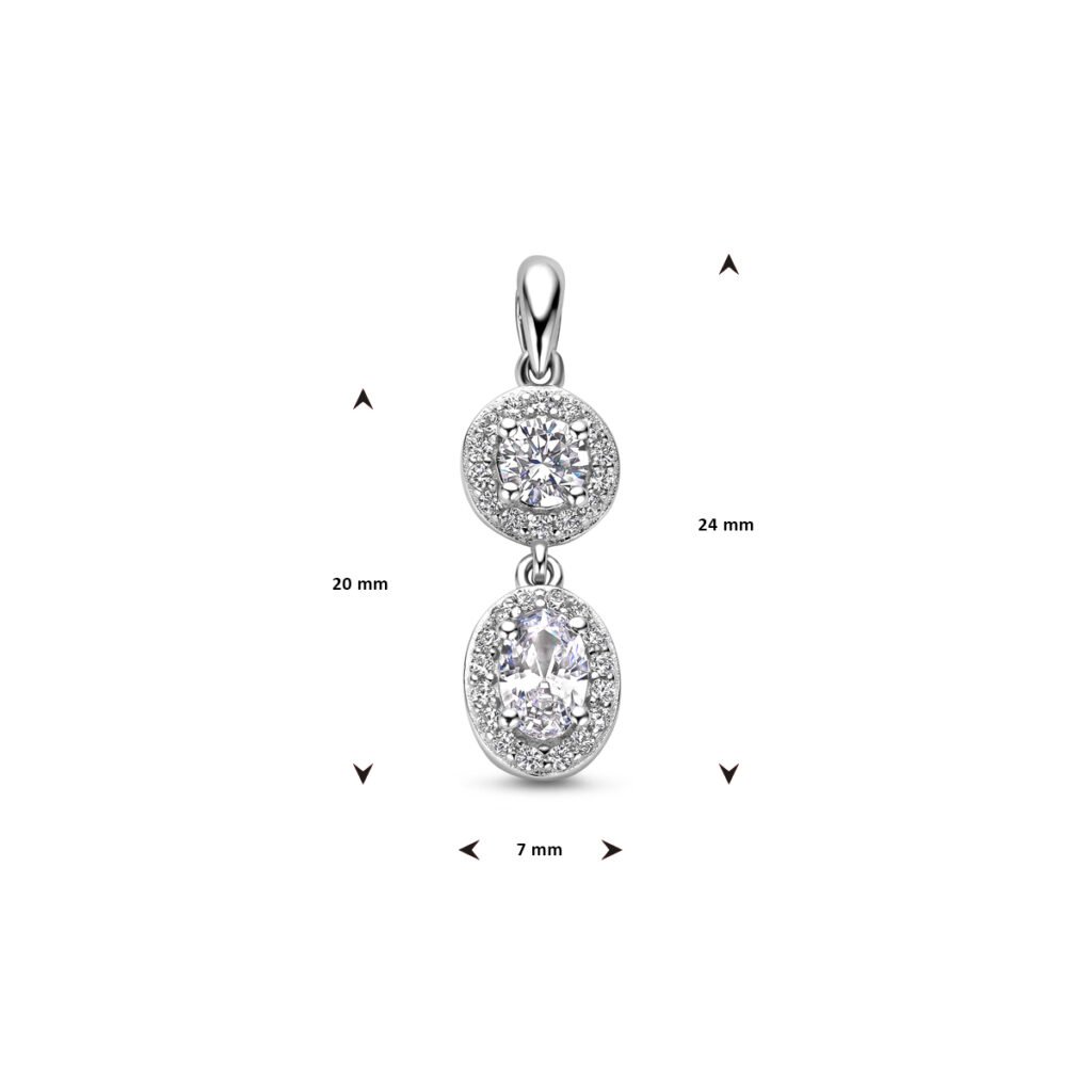 Gerhodineerd 925 zilveren hanger uitgevoerd met zirkonia. De hanger heeft een totale hoogte van 24mm.