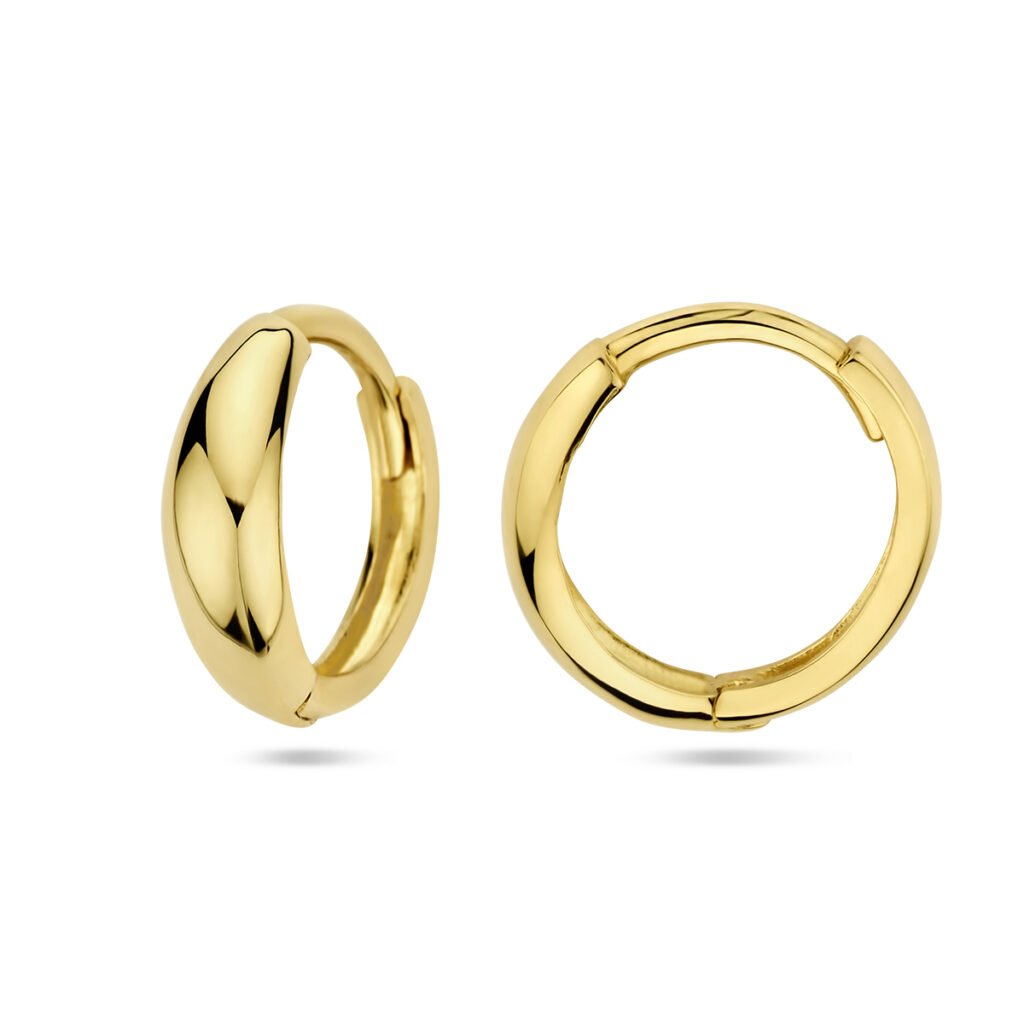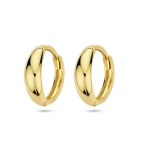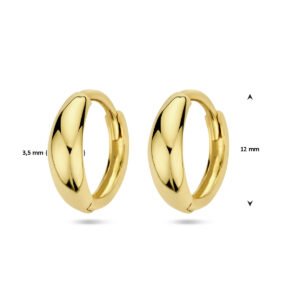 Deze Gouden Klapoorringen zijn vervaardigd uit 14 karaat geelgoud en hebben een metaalgewicht van circa 1,21 gram. De oorringen hebben een diameter van 12 mm en een breedte van 3,5 mm. Deze klapoorringen  zijn gepolijst, voor een prachtig glanzend resultaat.
