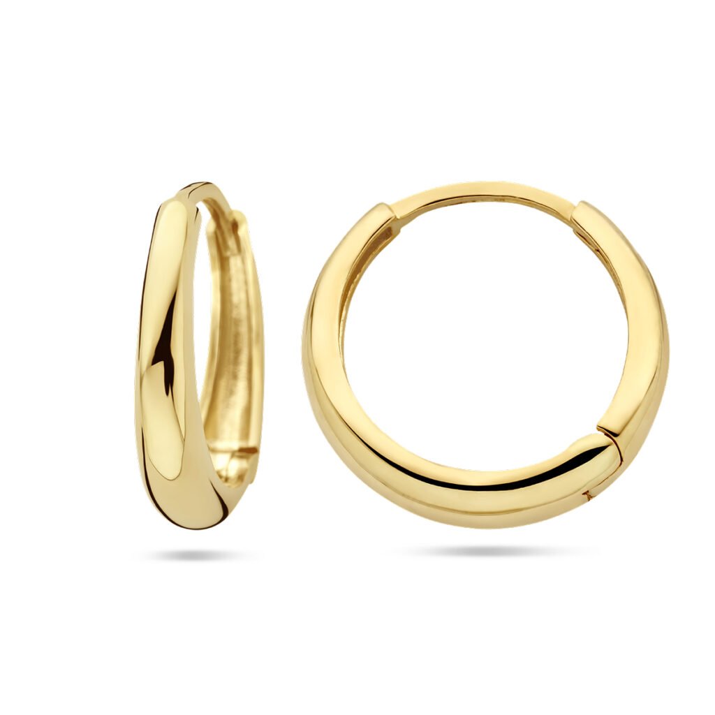 14k Geelgouden klapoorringen. De oorringen hebben een totale hoogte van 15.5mm.