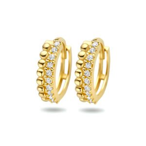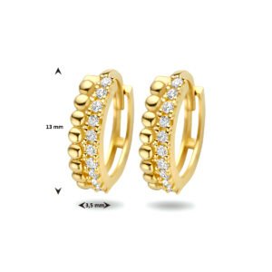 14k Geelgouden klapoorringen uitgevoerd met bolletjes en een schitterende zirkonia rij. De oorringen hebben een diameter van 13mm en een dikte van 3.5mm.