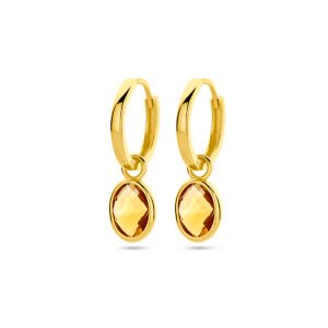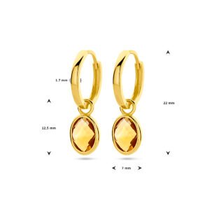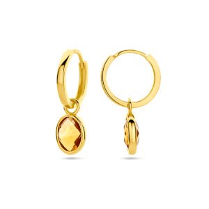 14k Geelgouden klapoorringen uitgevoerd met citrien. De oorringen hebben een totale hoogte van 22mm.
