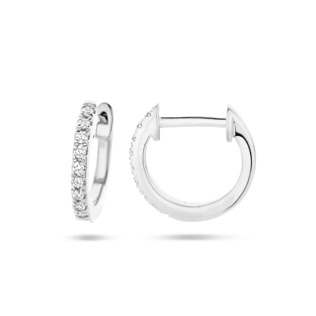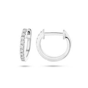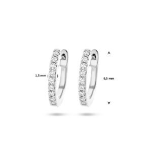 14k Witgouden klapoorringen uitgevoerd met een schitterende diamant rij. De klapoorringen hebben een afmeting van 9.5×1.5mm en het diamantgewicht is 0.06ct (2x 0.03ct).