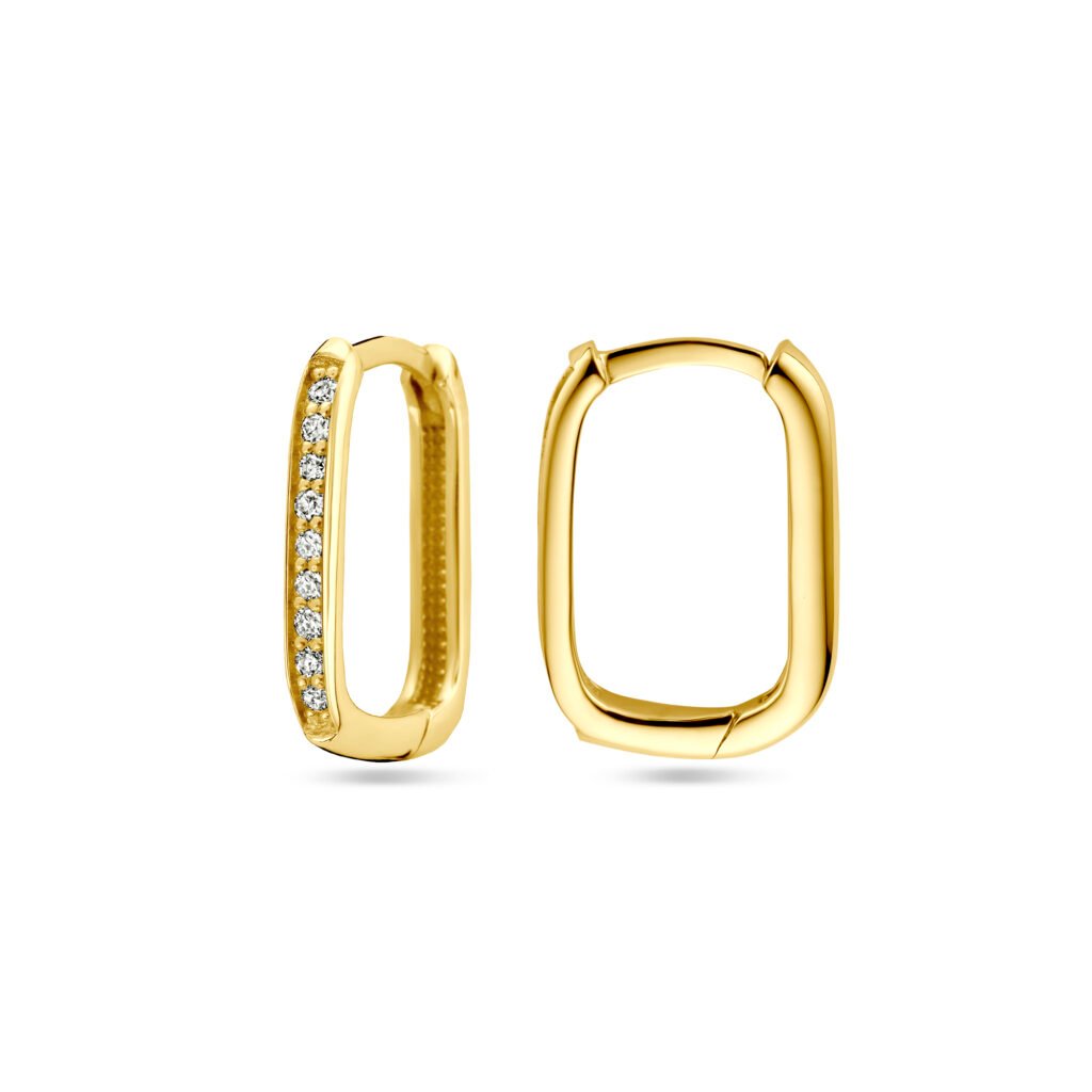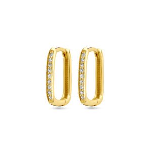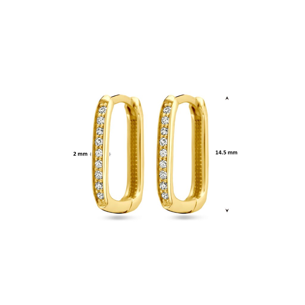 14k Geelgouden klapoorringen uitgevoerd met diamant. De klapoorringen hebben een afmeting van 14.5x2mm. Het totale diamantgewicht is 0.14ct.