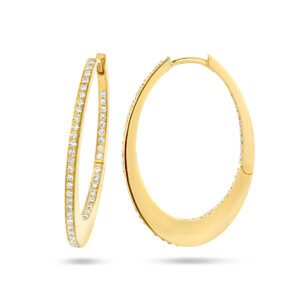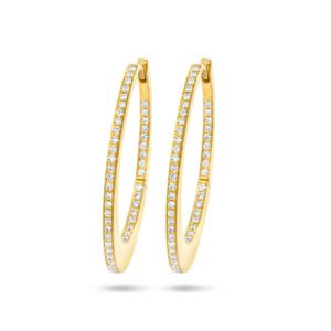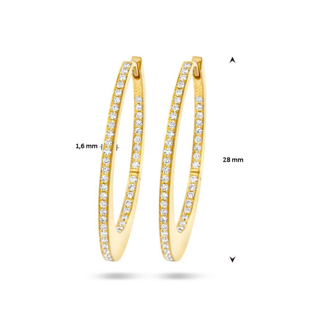 14k Geelgouden klapoorringen uitgevoerd met een schitterende diamant rij. De klapoorringen hebben een afmeting van 28×1.6mm met een diamantgewicht van 0.42ct (2x 0.21ct).