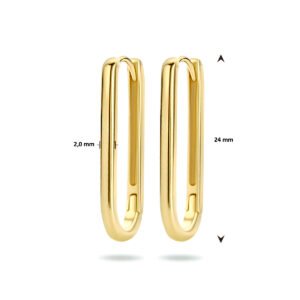 Geelgoud op 925 zilveren klapoorringen. De klapoorringen hebben een afmeting van 24x2mm.