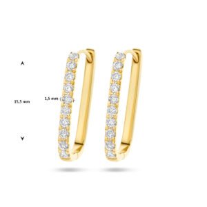 14k Geelgouden klapoorringen uitgevoerd met schitterende diamanten. De klapoorringen hebben een hoogte van 15.5mm.