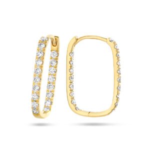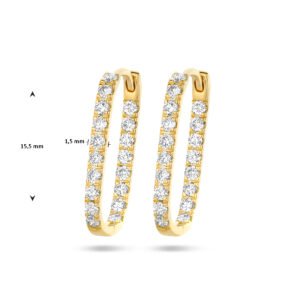 14k Geelgouden klapoorringen uitgevoerd met schitterende diamanten. De klapoorringen hebben een hoogte van 15.5mm.