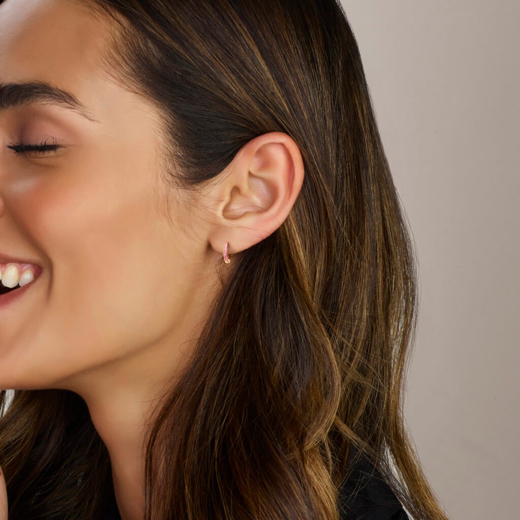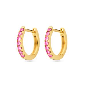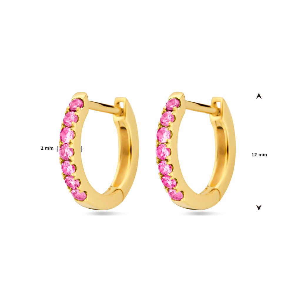 14k Geelgouden klapoorringen uitgevoerd met roze saffier. De klapoorringen hebben een afmeting van 12x2mm.