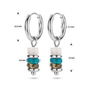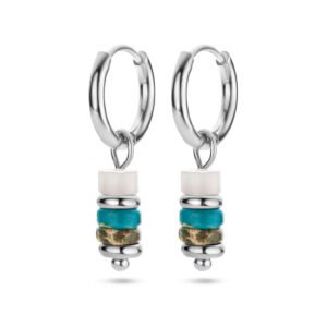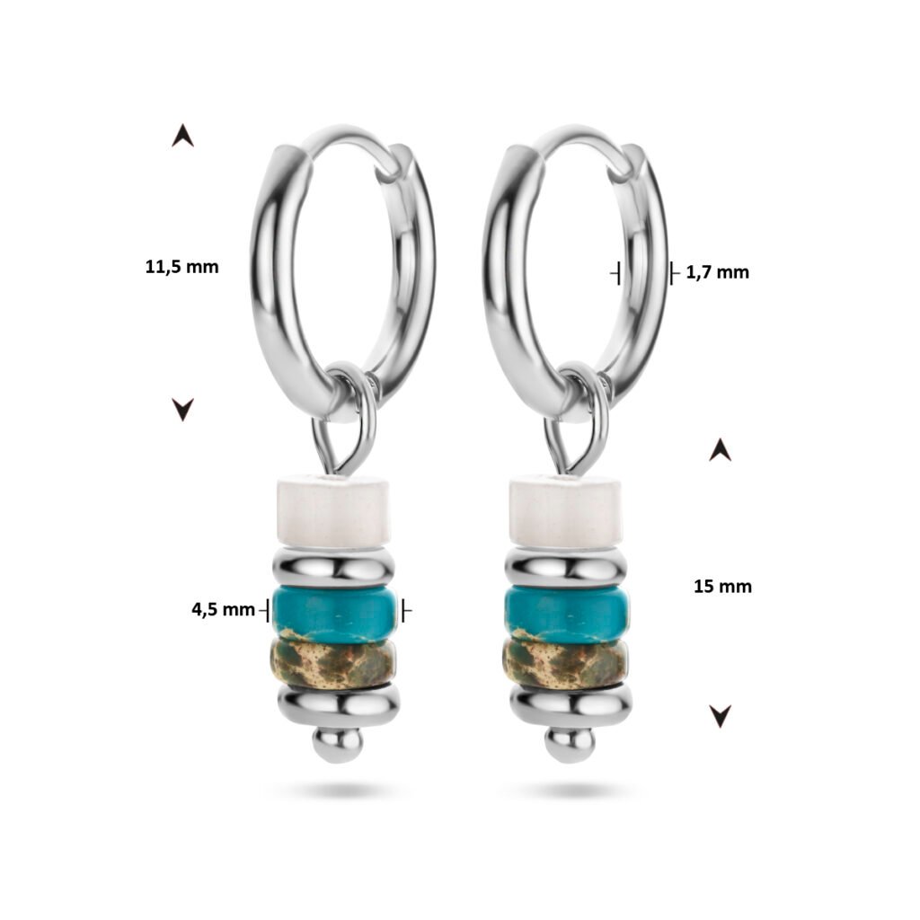 Stalen oorringen uitgevoerd met synthetische kleurstenen. De oorringen hebben een diameter van 11.5mm.