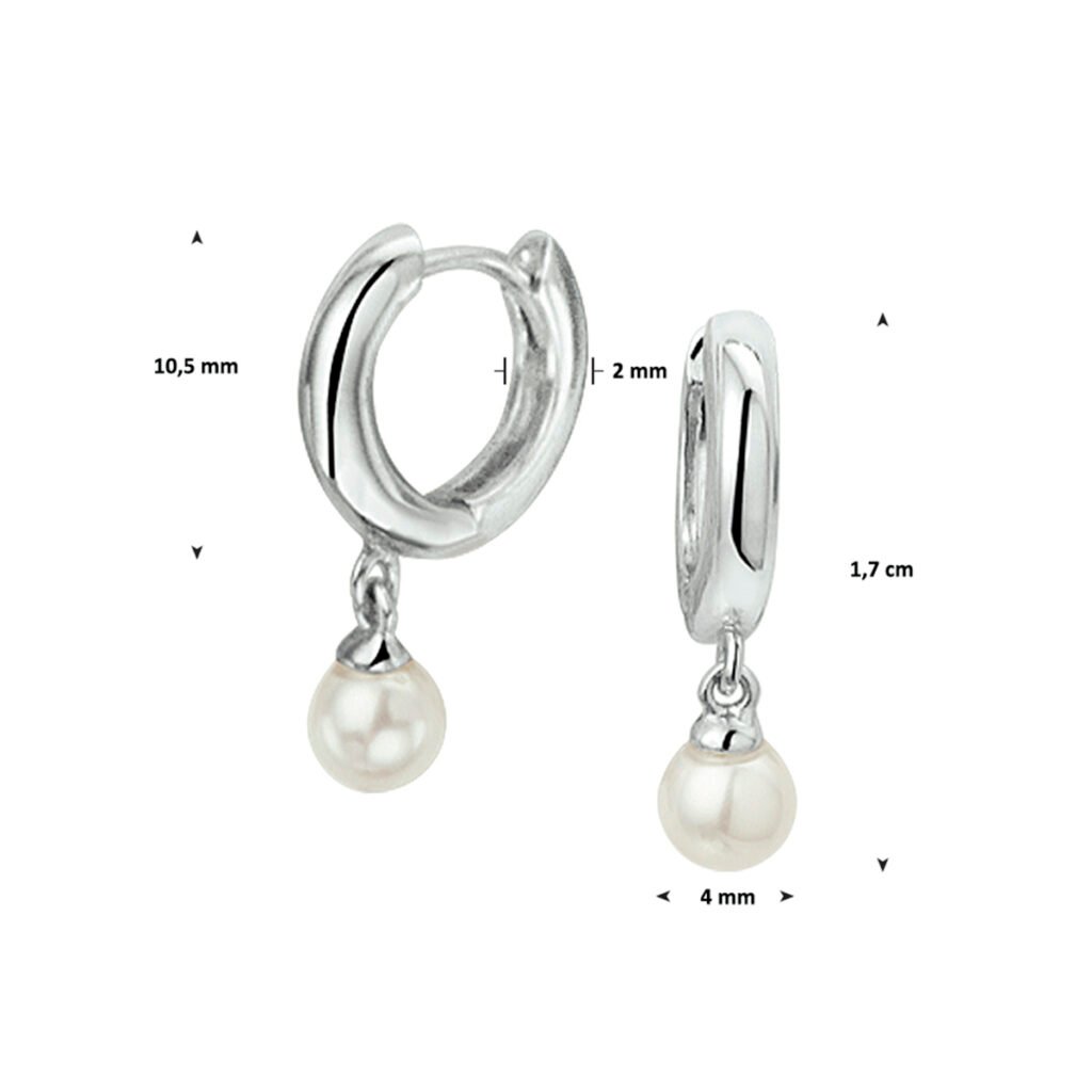 Gerhodineerd zilveren klapoorringen van 10.5x2mm uitgevoerd met poli rondjes van 4mm en stevige scharnier sluiting. De totale hoogte van de klapoorringen incl. rondjes is 1.7cm.