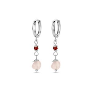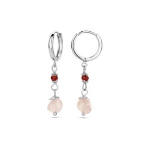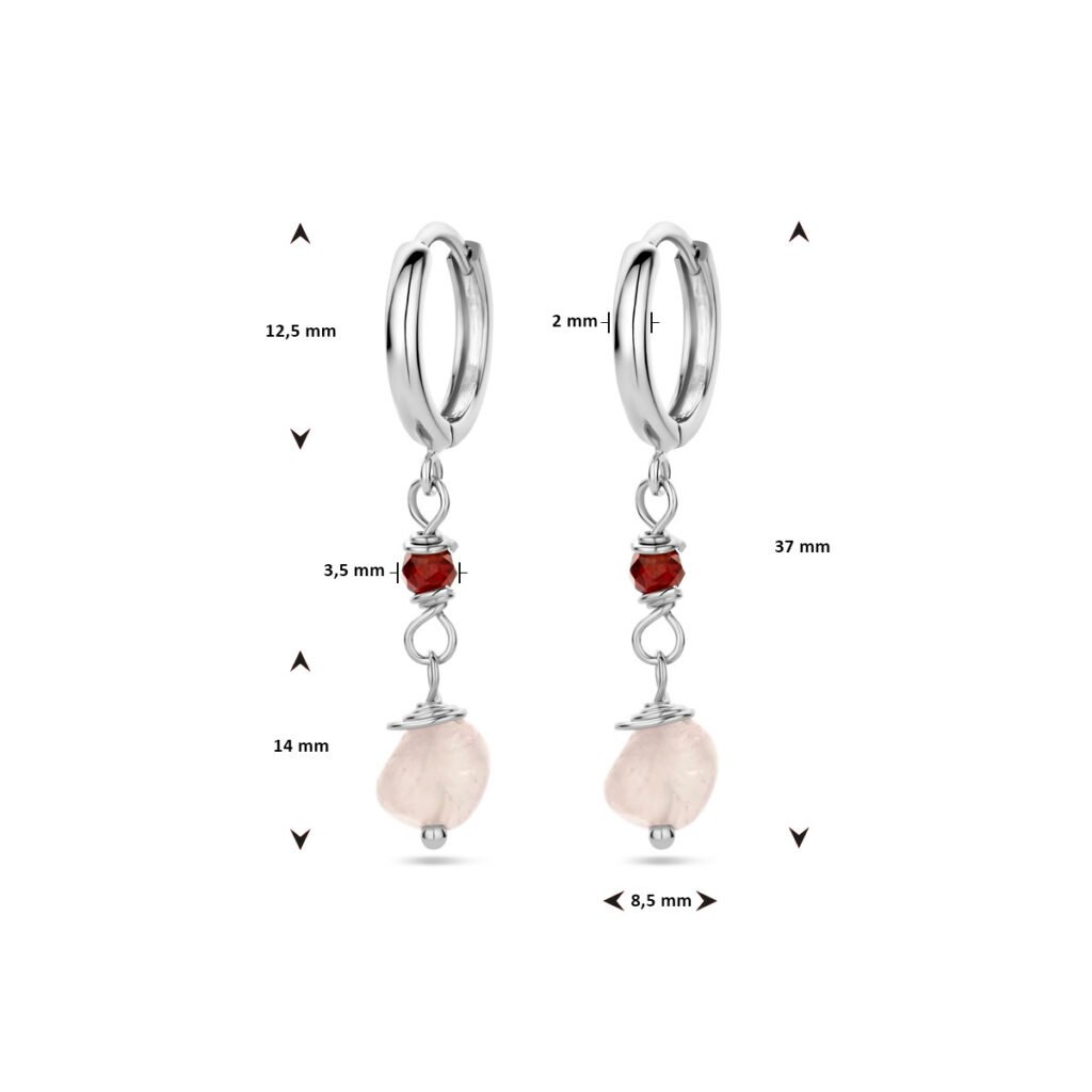Gerhodineerd 925 zilveren klapoorringen uitgevoerd met toermalijn en kwarts. De klapoorringen hebben een totale hoogte van 37mm.