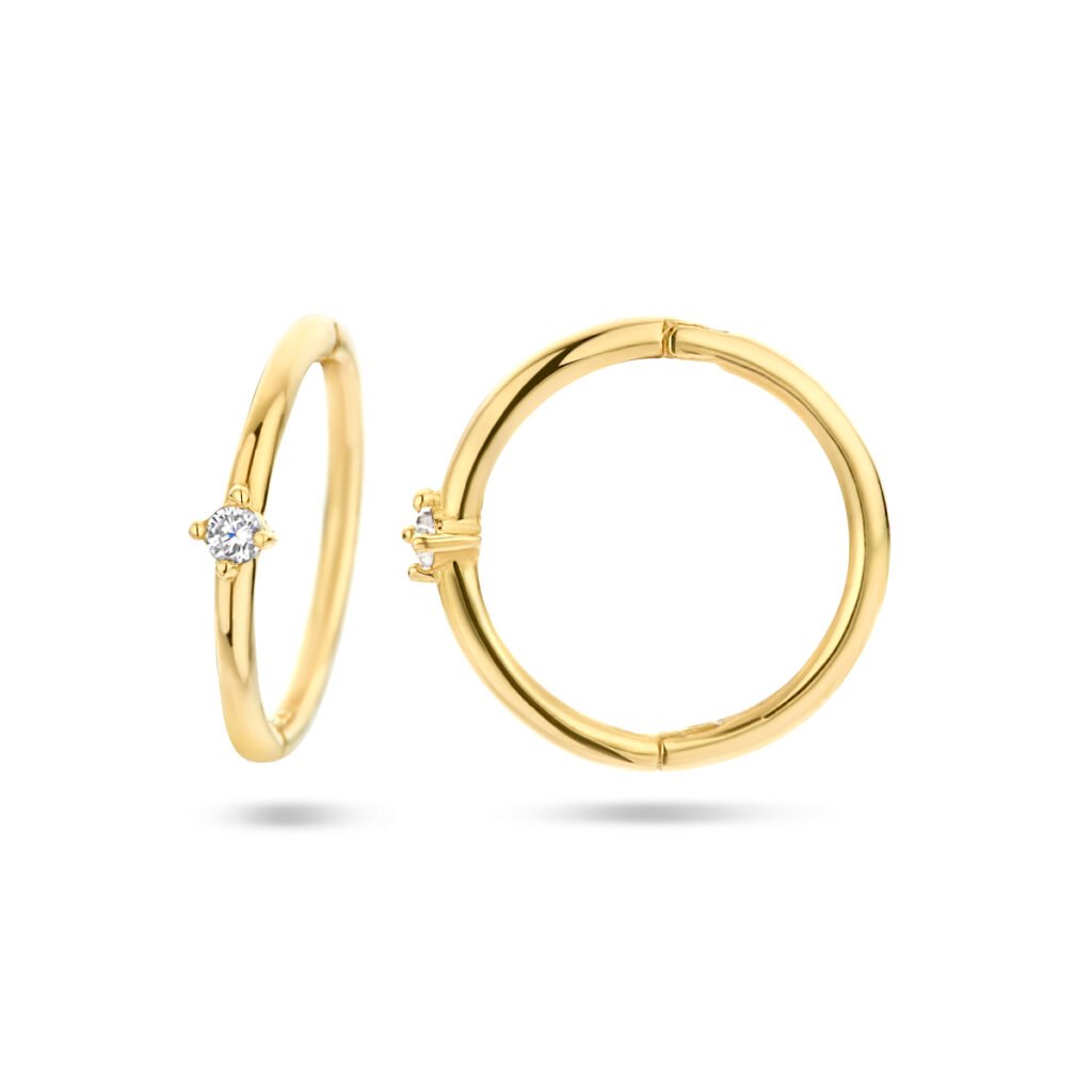 Gouden Klapoorringen met Zirkonia 12×2.2 mm