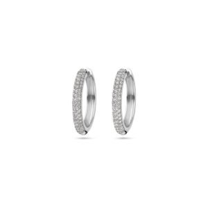 Gerhodineerd 925 zilveren klapoorringen uitgevoerd met zirkonia. De klapoorringen hebben een afmeting van 26x4mm.