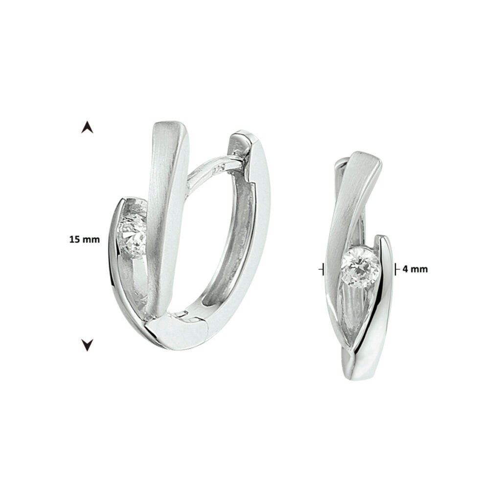 Gerhodineerd 925 zilveren klapoorringen uitgevoerd met een schitterende zirkonia. De oorringen hebben een afmeting van 15x4mm.