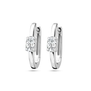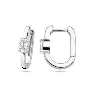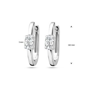 Gerhodineerd zilveren klapoorringen uitgevoerd met zirkonia. De klapoorringen hebben een afmeting van 14.5x3mm.