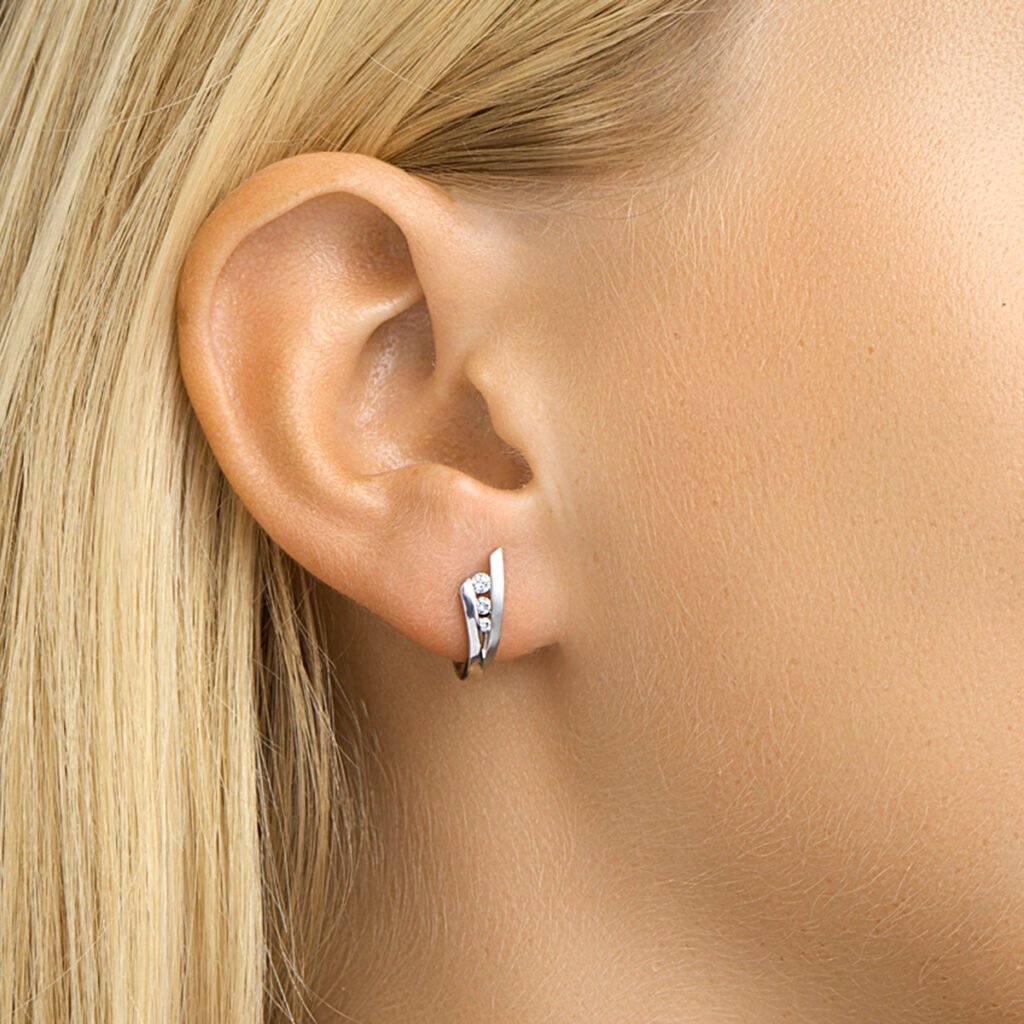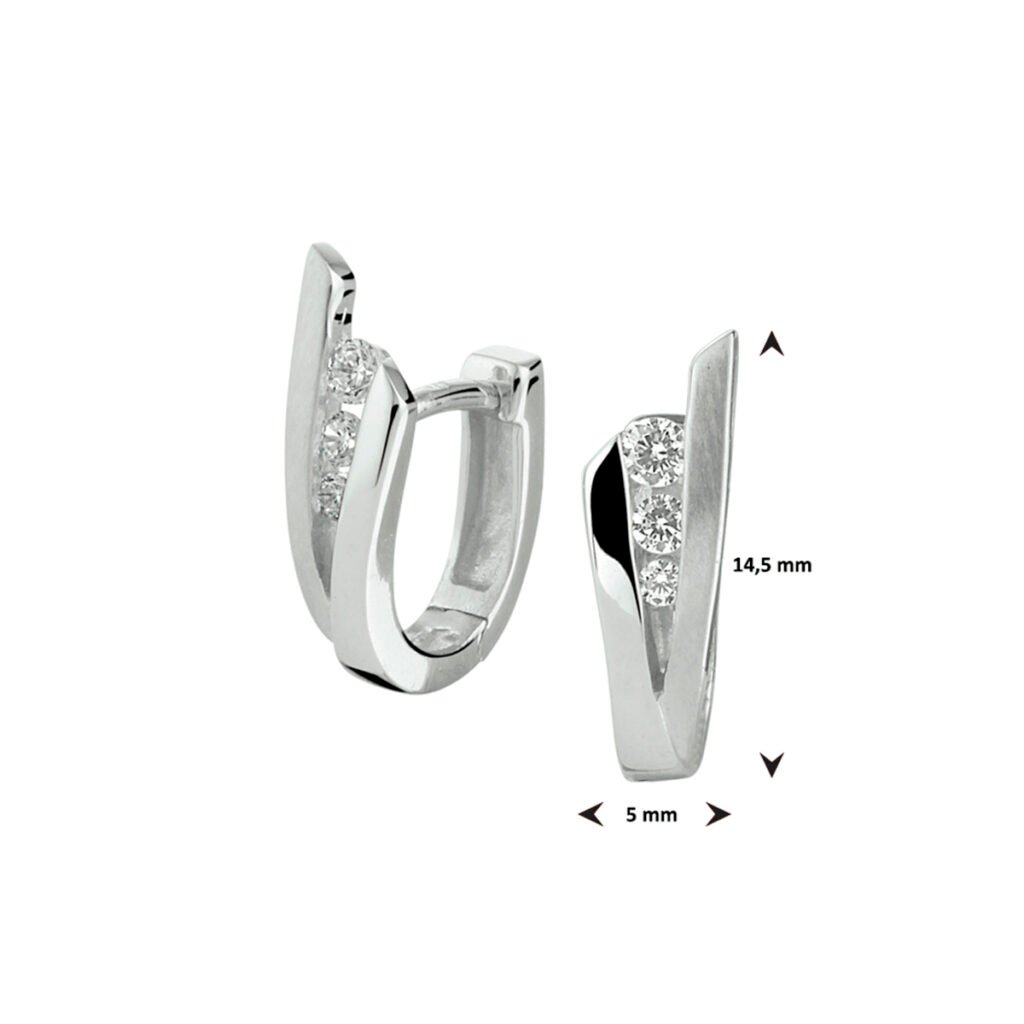 Gerhodineerd 925 zilveren klapoorringen uitgevoerd met een schitterende zirkonia rij. De klapoorringen hebben een afmeting van 14.5x5mm.