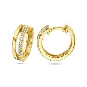 Stijlvolle geelgouden oorringen met scharnier. De schitterende zirkonia stenen maken deze oorringen een ware eyecatcher.