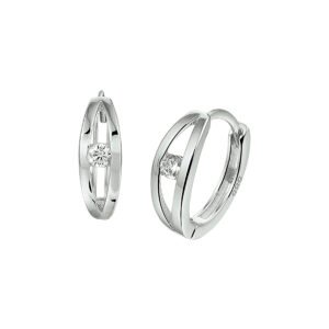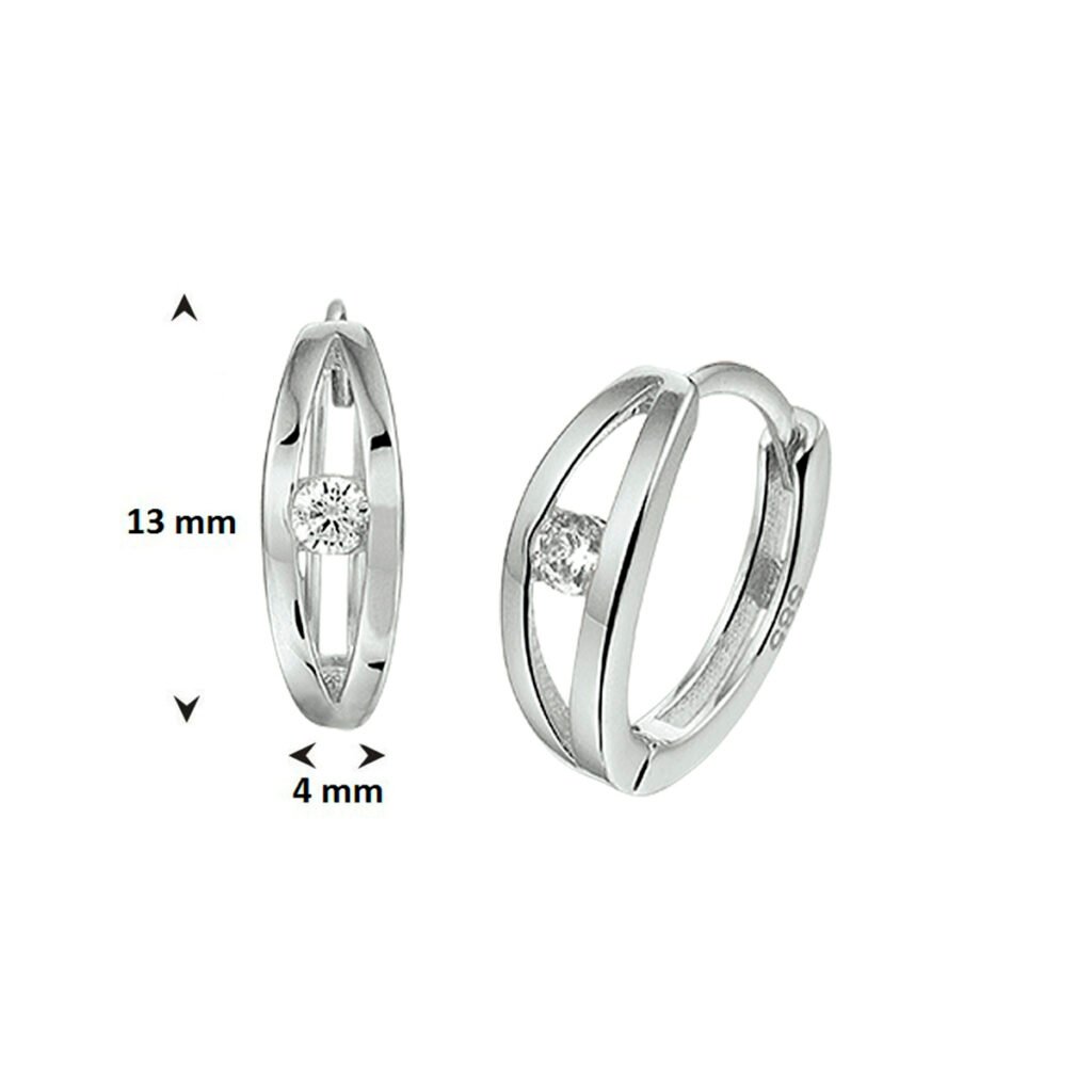 Witgouden klapoorringen met een afmeting van 13x4mm uitgevoerd met een ingespannen briljant geslepen zirkonia. De klapoorringen zijn ook verkrijgbaar in het geelgoud.