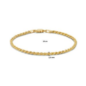 Geelgoud op 925 zilveren koord lengte artikel met een schakelbreedte van 2.5mm. Het lengte artikel heeft een stevige karabijn sluiting.