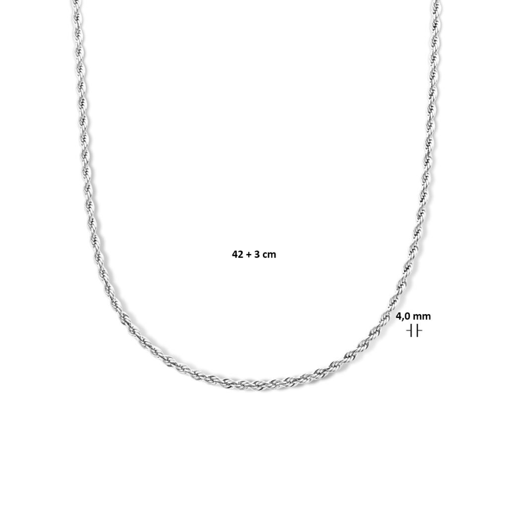 Stalen lengte artikel uitgevoerd met een koord schakel en een karabijn sluiting. De schakelbreedte is 4.0mm.