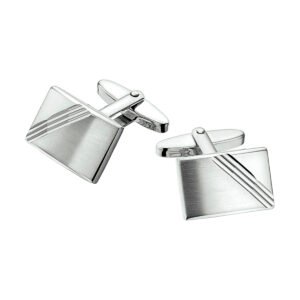 Deze Rechthoekige Matte met Gepolijste Manchetknopen van Gerhodineerd Zilver zijn volledig gemaakt van 925 sterling zilver, de allerbeste kwaliteit zilver, en voorzien van een matte en gepolijste bewerking met een laagje rhodium. Deze manchetknopen hebben een rechthoekige vorm met een licht bolstaand oppervlak dat voor de helft voorzien is van een gepolijste bewerking en voor de andere helft voorzien is van een matte bewerking. De twee bewerkingen worden van elkaar gescheiden door middel van meerdere dieper gelegen lijnen die diagonaal over het oppervlak lopen. Deze Rechthoekige Matte met Gepolijste Manchetknopen van Gerhodineerd Zilver hebben een breedte van 18,5mm met een hoogte van 12,5mm.