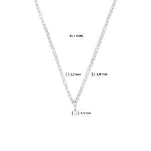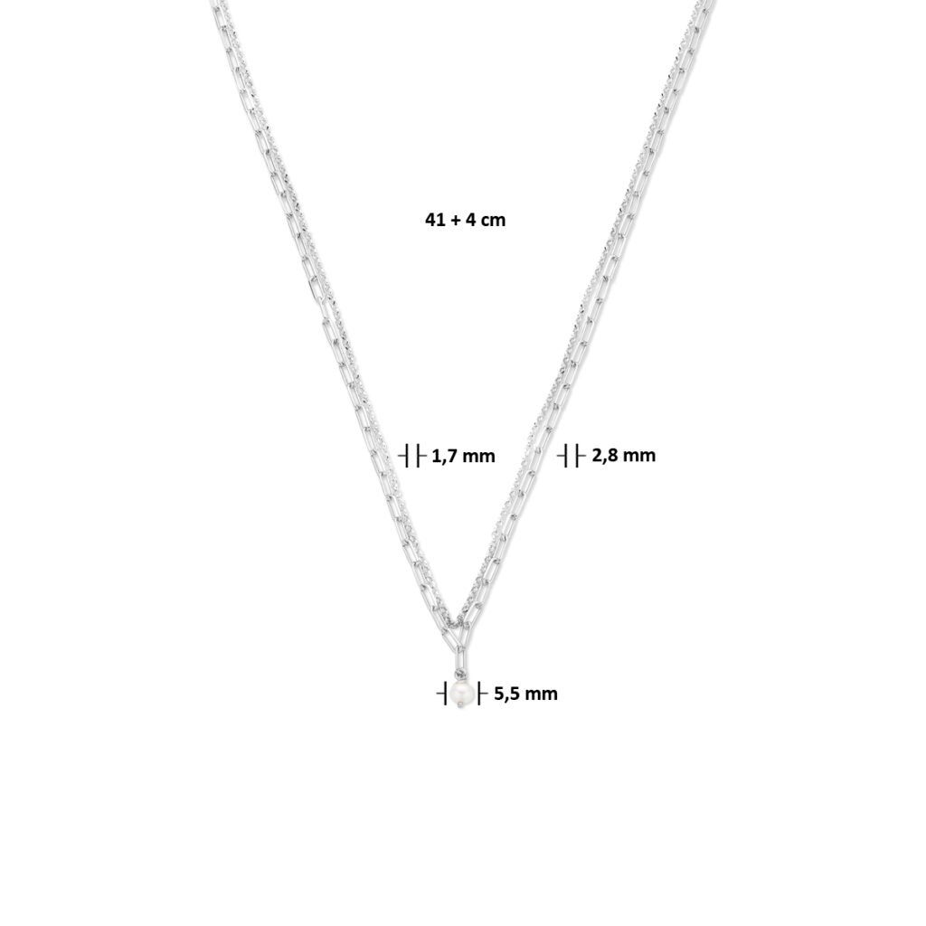 Gerhodineerd 925 zilveren collier met een zoetwaterparel. Het collier heeft een draaglengte van 41cm en een extensie van 4cm. Uitgevoerd met een karabijn sluiting. De schakelbreedte is 2.8mm.