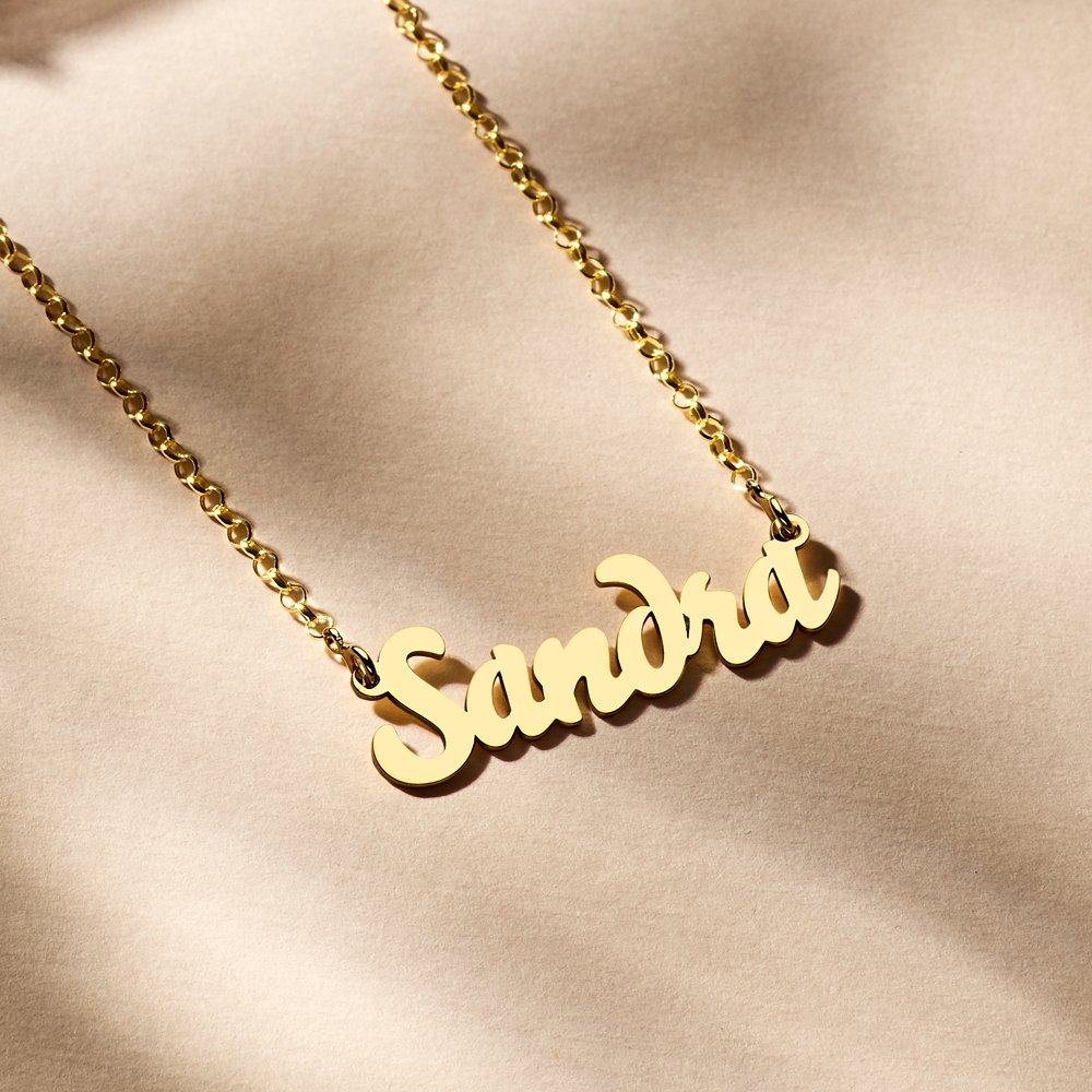 Deze Vergulde Zilveren Sandra Model Naamketting is afkomstig van Names4ever, het merk dat al enige tijd bekend staat om hun stijlvolle gepersonaliseerde sieraden. Zo kunt u bij deze hanger een naam naar keuze opgeven die vervolgens speciaal voor u tot een stijlvolle naamketting vermaakt wordt door een ervaren edelsmid in een professioneel atelier. Deze edelsmid zal er vanaf de samenstelling tot aan de afwerking zorg voor dragen dat uw unieke sieraad zo mooi mogelijk wordt. Alle sieraden van Names4ever worden op bestelling gemaakt en ze zijn dus allemaal uniek. Deze naamketting van het Sandra model kenmerkt zich door de speelse, licht bolstaande letters. Deze naamketting is gemaakt van 925 sterling zilver met een goudkleurige coating en wordt geleverd inclusief vergulde jasseron schakel collier met een lengte van 42cm.