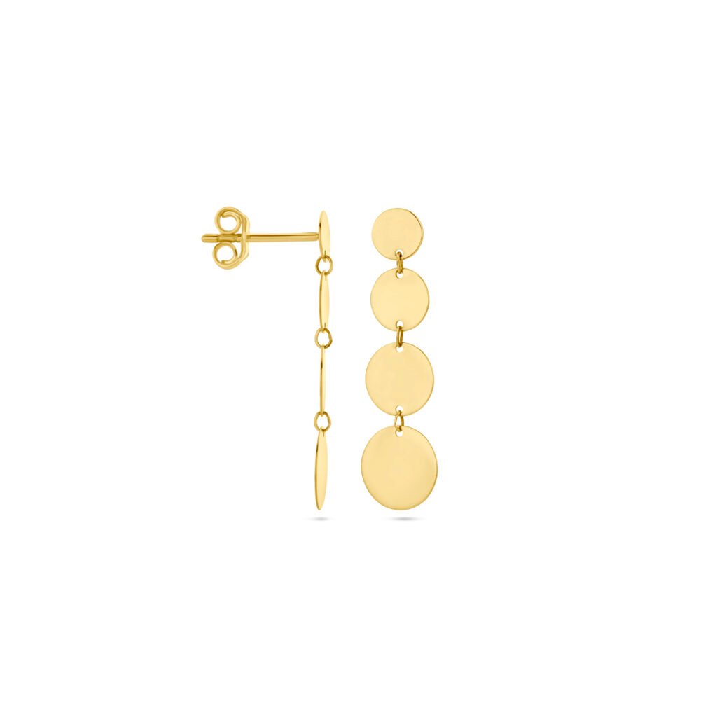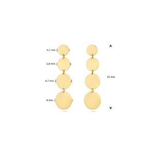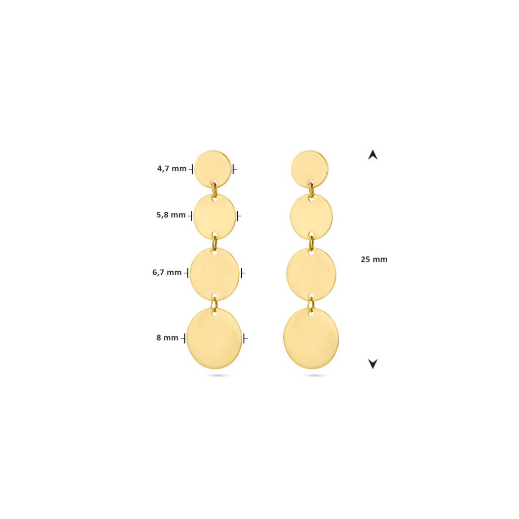 14k Geelgouden oorhangers uitgevoerd met cirkels. De oorhangers hebben een totale hoogte van 25mm.