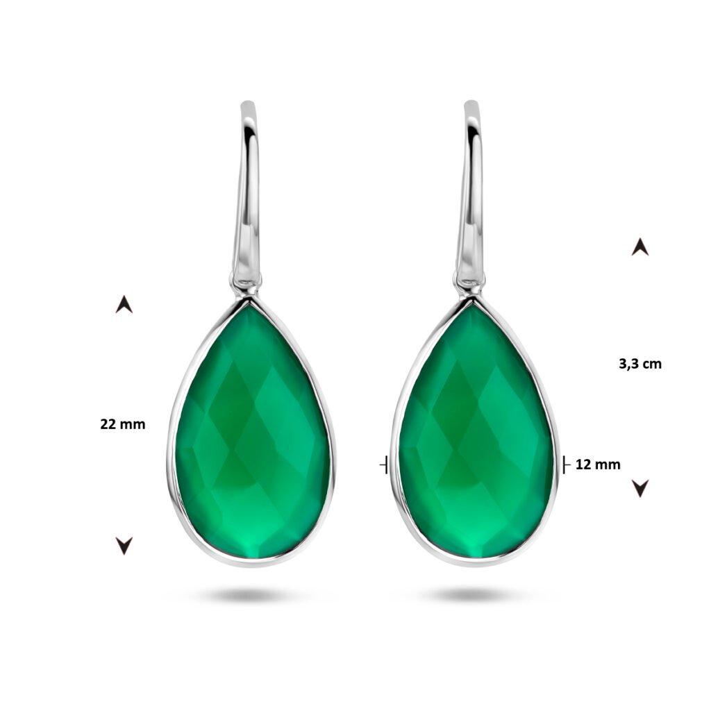Deze luxueuze Gerhodineerd Zilveren Druppelvormige Oorhangers met Groen Kwats zijn vervaardigd uit 925 Sterling zilver dat is voorzien van een gerhodineerde coating en vervolgens is gepolijst, in de vorm van een Franse haak met daaraan een druppelvormige hanger met daarin een groen Kwats. De totale hoogte van de Gerhodineerd Zilveren Druppelvormige Oorhangers met Groen Kwats is 33 mm, waarbij de hanger een afmeting heeft van 22 x 12 mm.