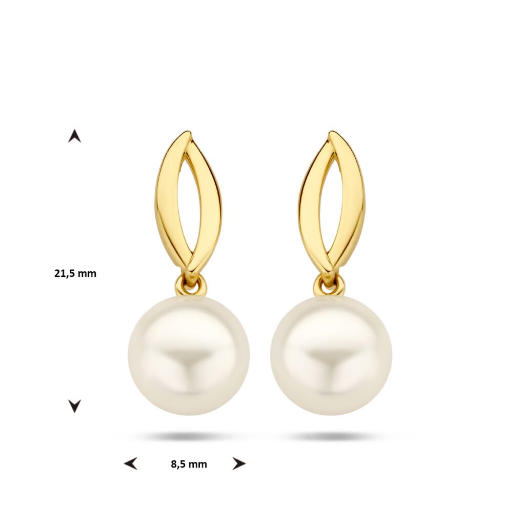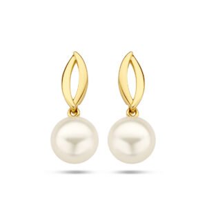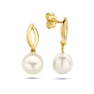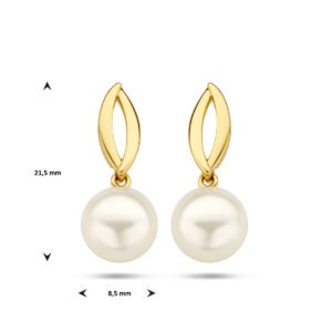 14k Geelgouden oorhangers uitgevoerd met een zoetwaterparel van 8.5mm. De oorhangers hebben een totale hoogte van 21.5mm.