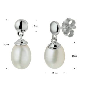 Deze oorhangers met witte zoetwaterparel zijn gemaakt van 14 karaats witgoud, de allerbeste kwaliteit witgoud, met een fijntjes gepolijst oppervlak dat mooi glanst. Deze oorhangers bestaan uit een rond plaatje aan de voorkant, met daaronder een hangertje met een elegante witte zoetwaterparel die mooi glanst. Aan de achterkant van het ronde plaatje zit een slanke steker die u gemakkelijk door uw oor steekt, met een handige sluiting. Deze oorhangers hebben een afmeting van 6,5x15mm.