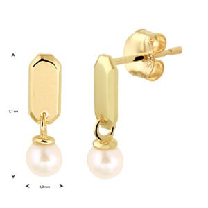 Deze schitterende oorhangers zijn gemaakt van 14 karaat goud, dat bestaat uit 58,5% goud. Het sieraad is gepolijst, wat zorgt voor een mooie glanzende afwerking. De oorhangers bestaan uit een slanke steker, met daaronder een plaatje met een schitterende parel. Het sieraad heeft een totale hoogte van 1,1 cm en een breedte van 3 mm.