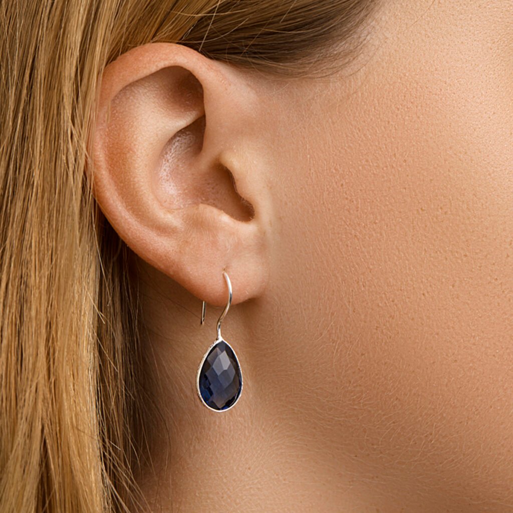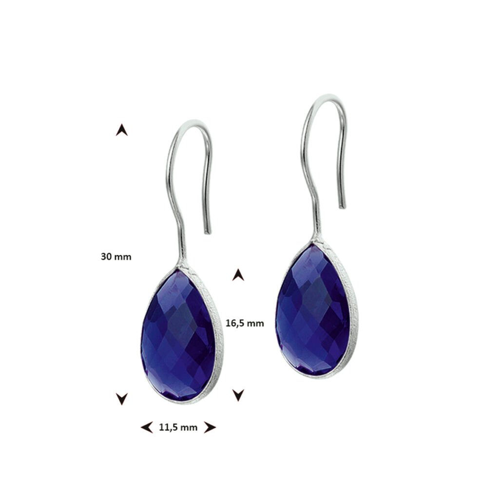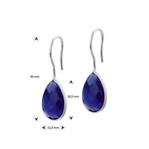 Deze Blauwe Synthetische Robijn Oorhangers van Zilver met Franse Haak zijn volledig gemaakt van 925 sterling zilver, de allerbeste kwaliteit zilver, en voorzien van een gepolijst oppervlak met een synthetische blauwe robijn. Deze oorhangers bestaan uit een langwerpige Franse haak met daaraan een druppelvormige hanger die bezet is met een synthetische blauwe robijn met een verfijnd facet-geslepen oppervlak. Deze Blauwe Synthetische Robijn Oorhangers van Zilver met Franse Haak hebben een steenmaat van 16,5mm met 11,5mm en zijn speciaal voor dames.