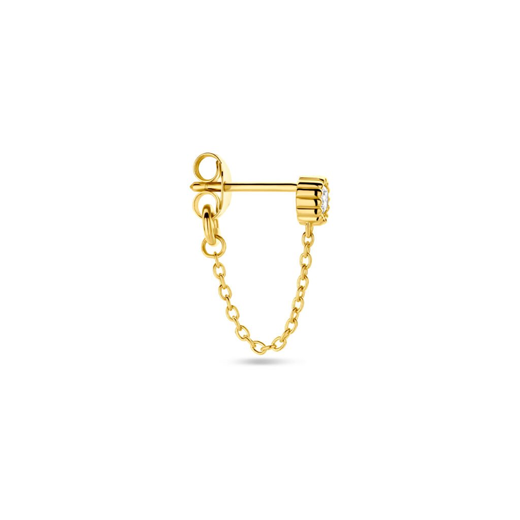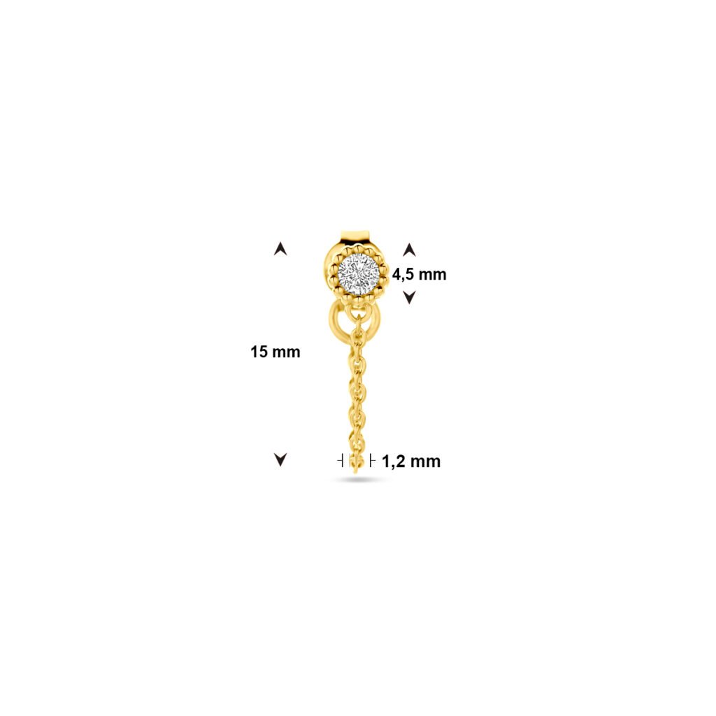 Geelgoud op 925 zilveren oorknop uitgevoerd met wit zirkonia. De oorknop heeft een diameter van 4.5mm. Deze oorsieraden worden per stuk verkocht ipv per paar. Geen garantie op de plating.
