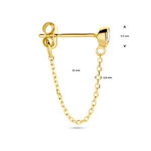 14k Geelgoud oorknop uitgevoerd met zirkonia. Met een diameter van 3.5mm. Deze oorsieraden worden per stuk verkocht ipv per paar.