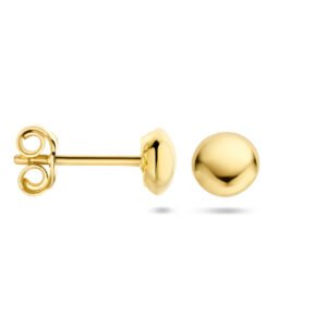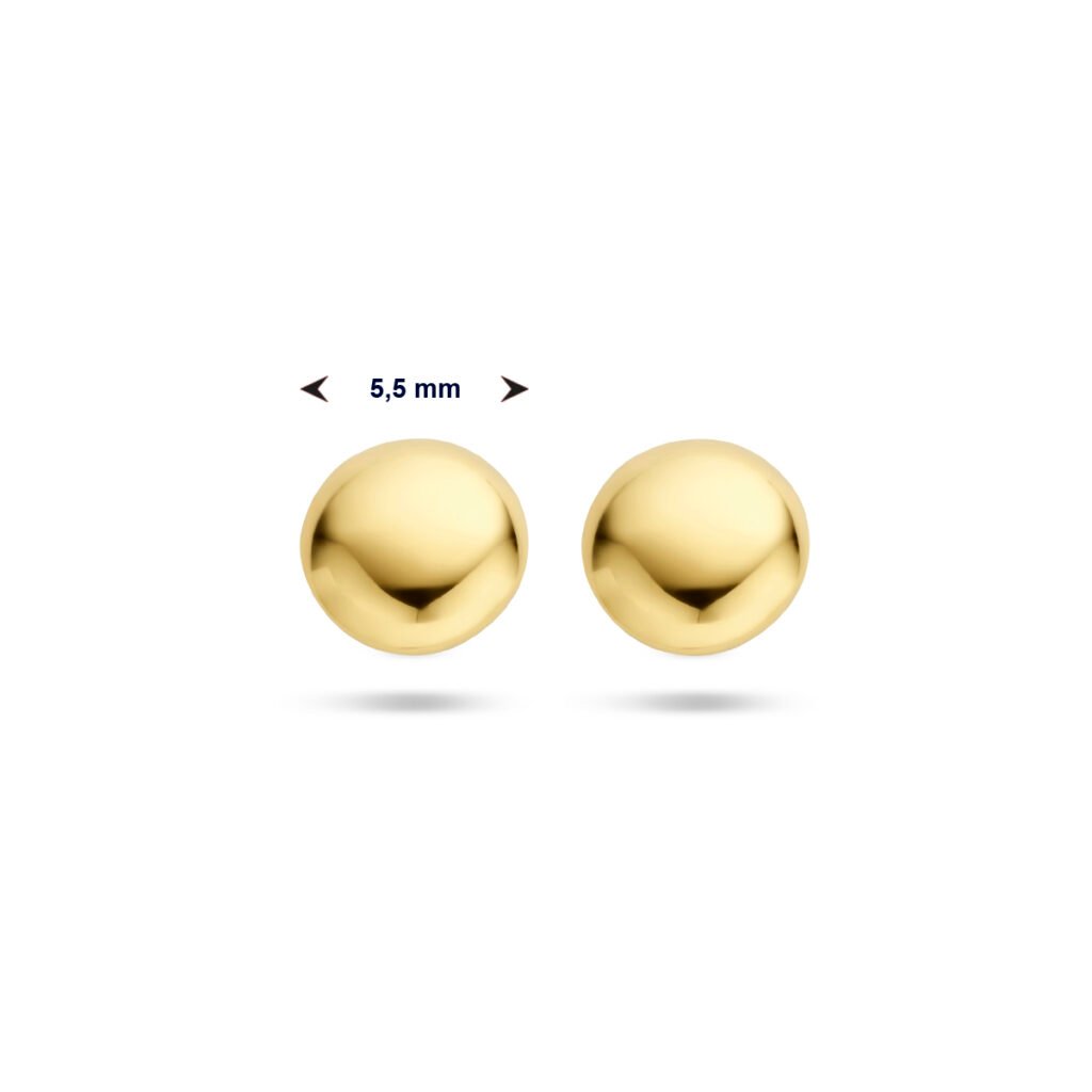 Deze elegante Gouden Glad Ronde Oorknoppen zijn vervaardigd uit gepolijst 14 karaat geelgoud, lopen enigszins bol en hebben een metaalgewicht van circa 0,96 gram. De oorstekers worden gesloten met behulp van een vlindersluiting en hebben een diameter van 5,5 mm.
